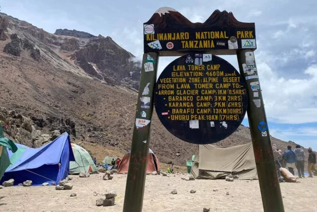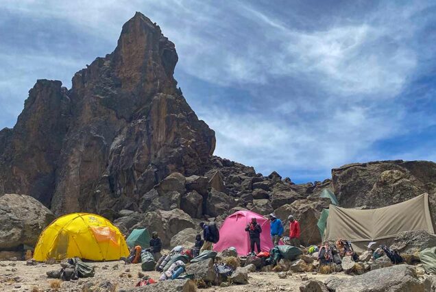This is a crucial acclimatization day. Trek uphill to Lava Tower (4,630m), then descend into the stunning Barranco Valley. The “climb high, sleep low” approach helps your body adjust to altitude while offering spectacular views of the Breach Wall and glaciers.